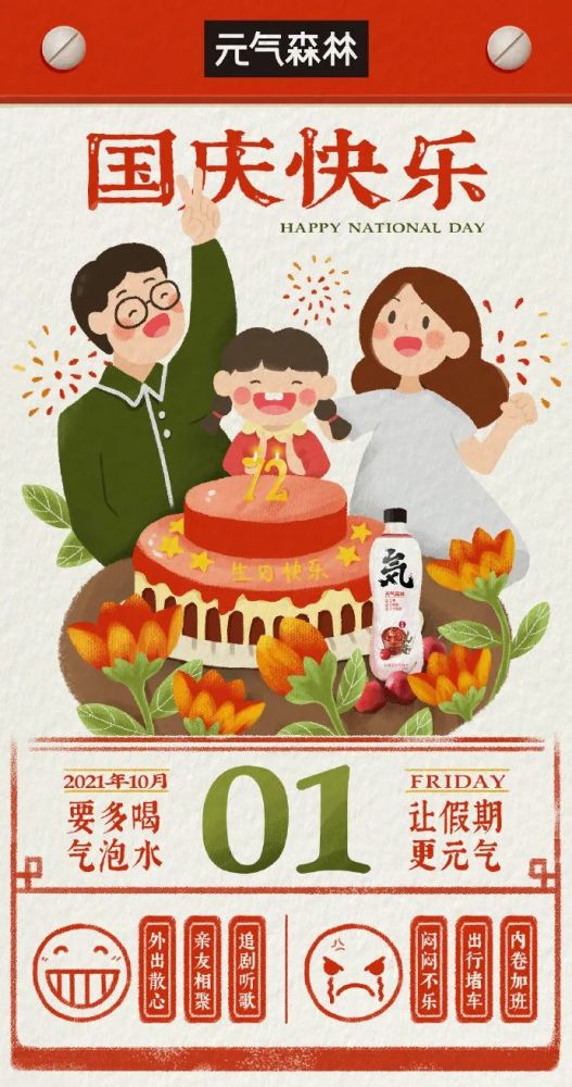 国庆节 祝祖国繁荣昌盛,祝大家国庆愉快,长假快乐,多喝气泡水,假期更元气!