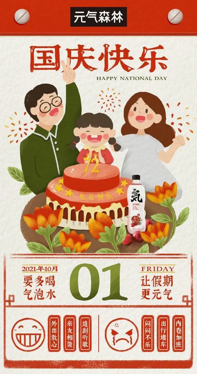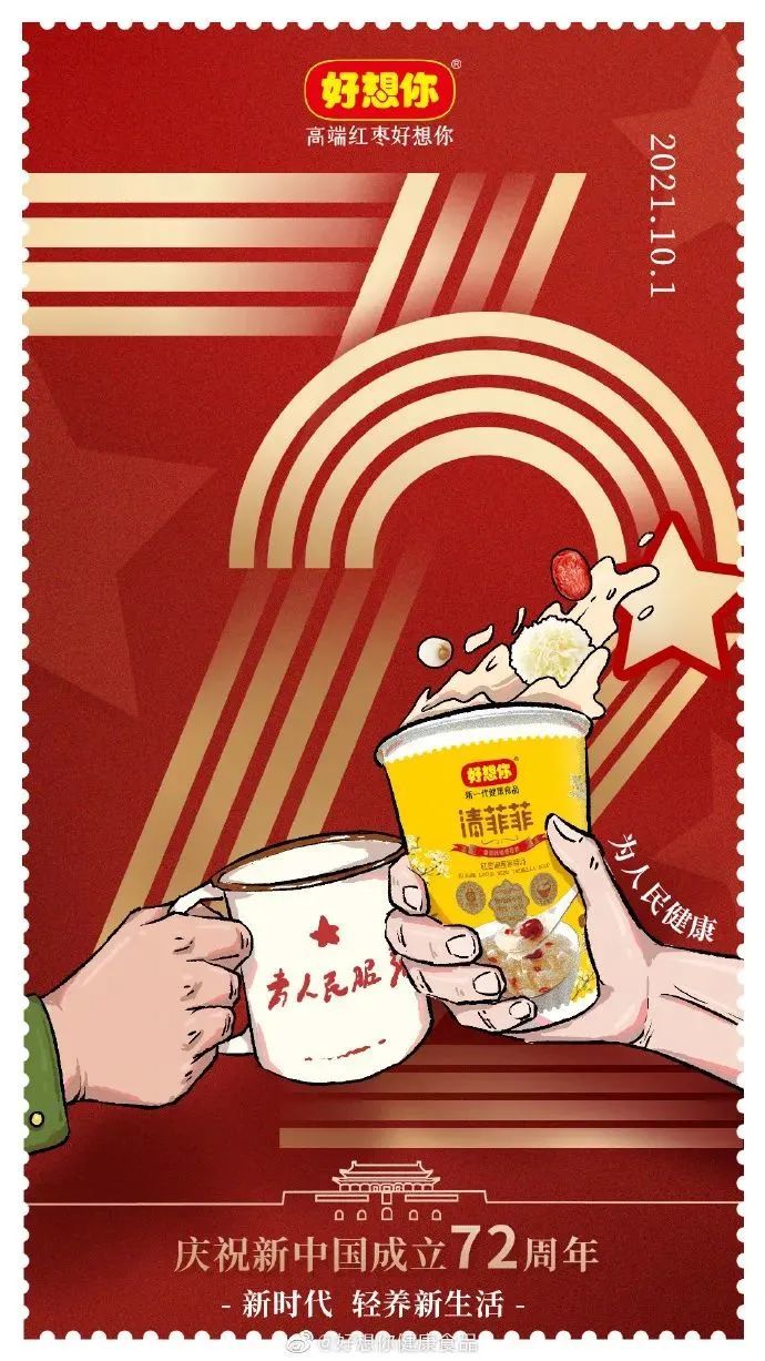 大音希声,值此新中国成立73周年,直接祝福、祝愿也是国庆节海报的常见创作思路。