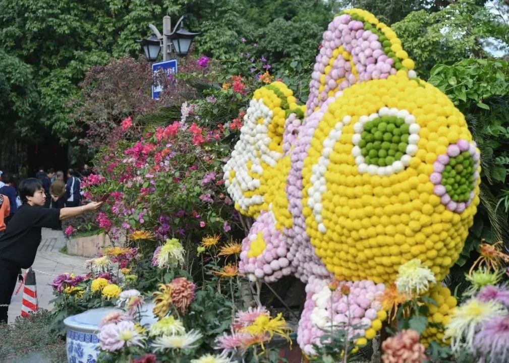 这个场景,就像一场热闹的庙会,而主角是菊花。当时,人们不仅培育出了千姿百态、万紫千红的菊花品种,还给它们取了各式各样喜庆的名字。街边的商店酒家,搭起了菊花主题的花棚花架,宛如一座座花门。中国人对于美好生活的热爱和向往,真是古今如一。