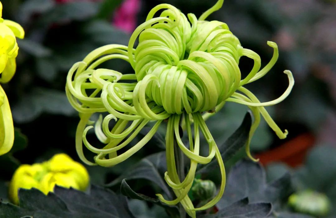 一株含苞欲放的珍稀绿菊。新华社发(王建中 摄)