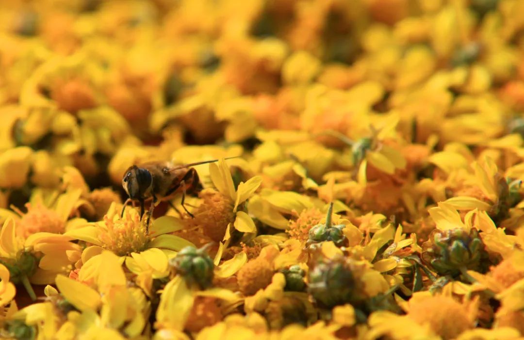 一只蜜蜂在野菊上采蜜。新华社资料片