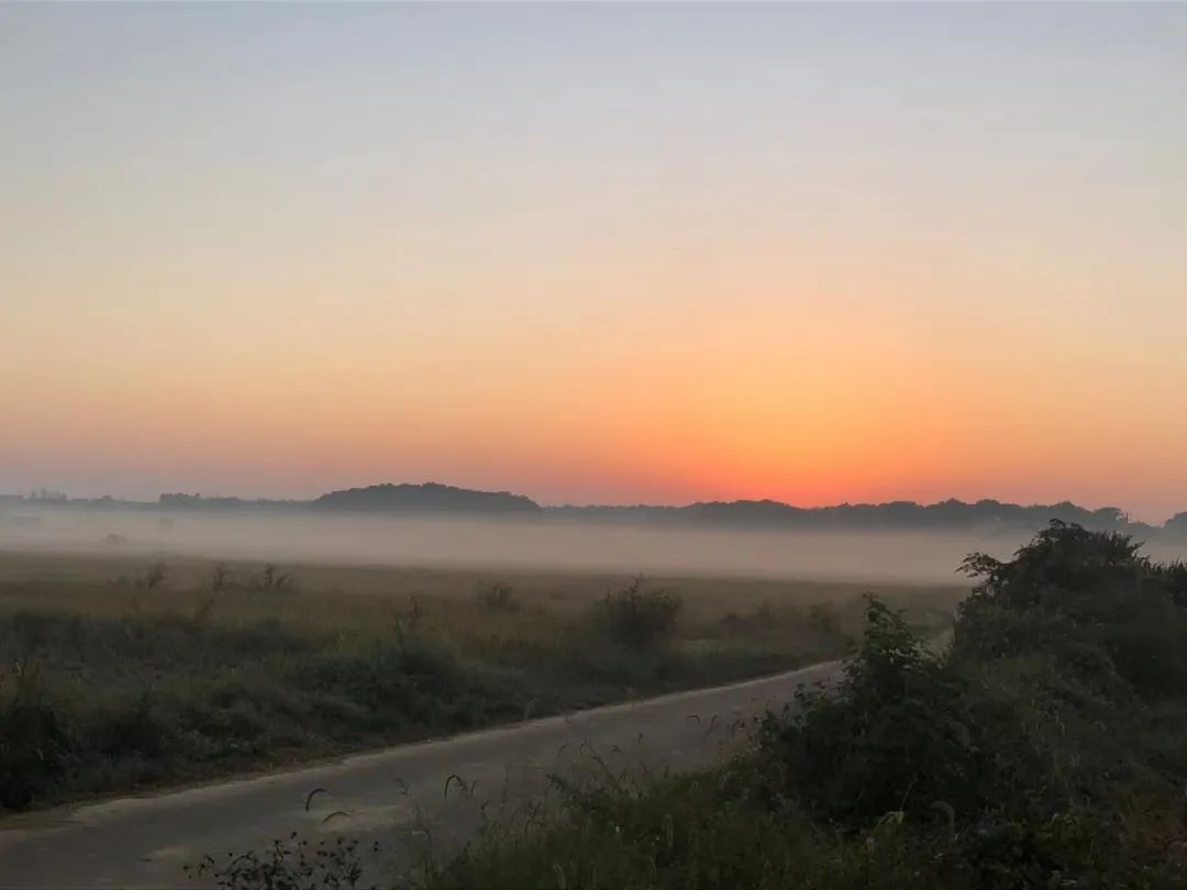 温度已经在悄悄变低了,清晨的田野笼罩在一片水雾之中,仙气飘飘。
