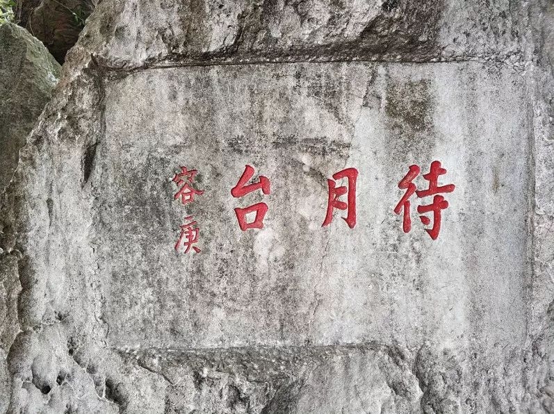 位于玉皇殿背后东侧,此台约有200平方米,平台南角有巨石壁立,侧旁有休憩之处,可弈棋,另一旁有元宝石横卧在地。东望西江如玉带,北望北岭似屏障,近眺仙女湖似玉盆。不少游客游览到此,均赞不绝口:身临此境,真是花如玉,石如玉,人也如玉了。广东著名考古学家兼书法家容庚于1980年10月留下题刻待月台。